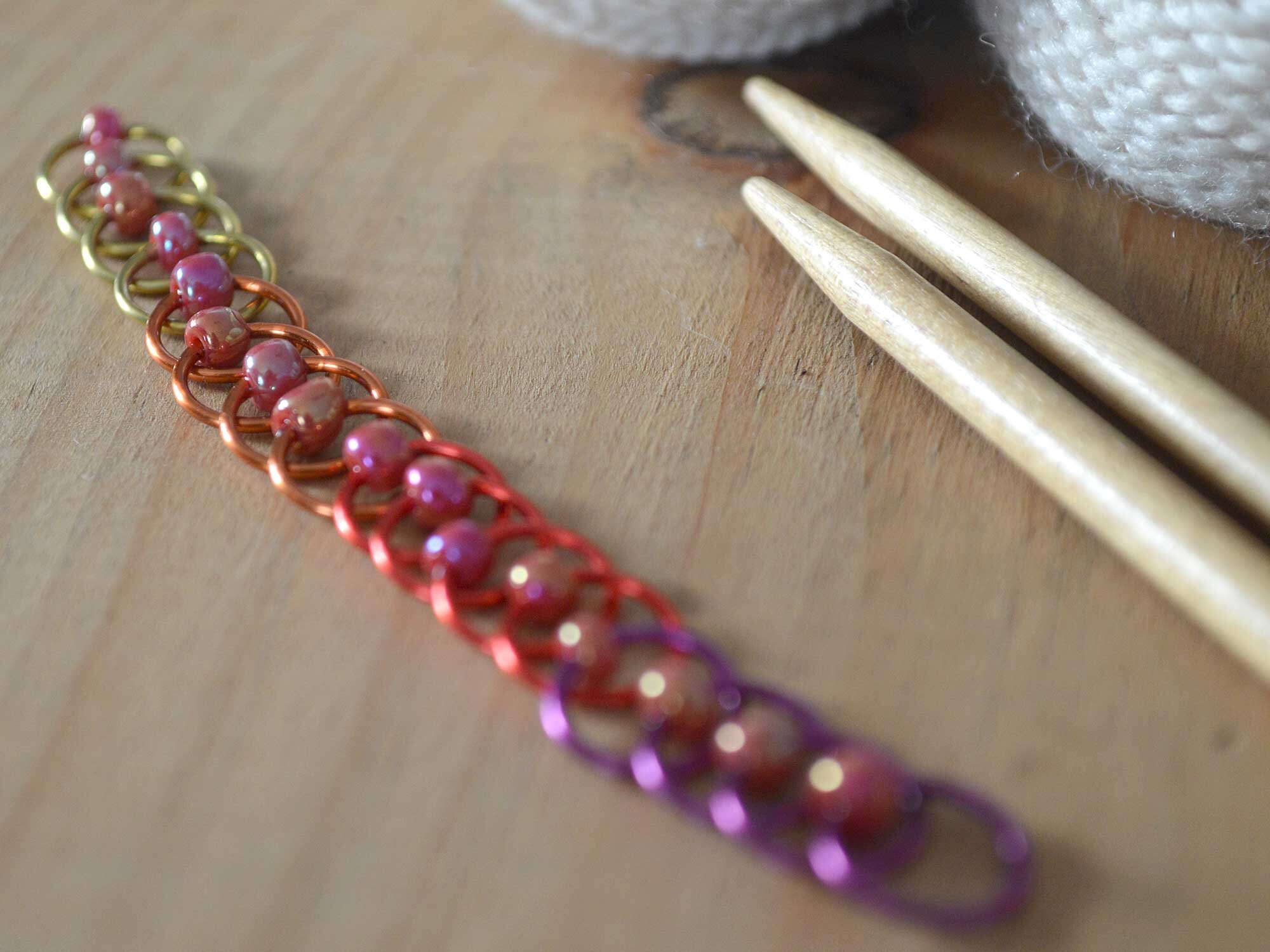 Yellow, orange, red and fuchsia 18 gauge wire is matched with iridescent glass beads in this set of markers named and inspired by the colors of the sky at the dawning of a new day. Each set will include an equal number of each of the four colors represented in this design.